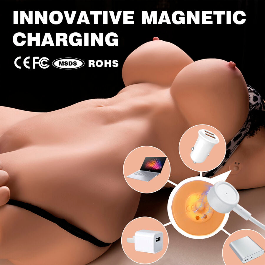 • Diseño hiperrealista con detalles anatómicos: Este torso ha sido diseñado para replicar fielmente el aspecto y la sensación del cuerpo femenino. Su estructura incluye: Senos moldeables y suaves, que brindan una experiencia táctil placentera. Cintura definida y curvas naturales, proporcionando una apariencia realista. Labios vaginales detallados y una entrada anal realista, con texturas internas diseñadas para una estimulación auténtica.